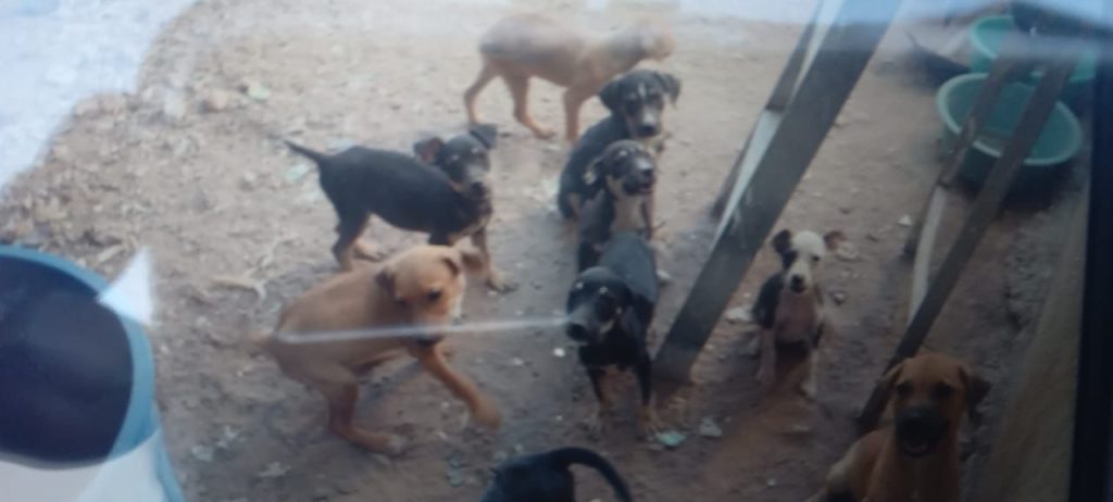 Se logró determinar que tanto en el pasillo como en el patio trasero de la vivienda se encontraban once cachorros caninos, siete de ellos de color negro y cuatro de color café, además, una perra con cuatro cachorros; todos de raza criolla y la mayoría presentaba signos de desnutrición, sarna, ácaros y diarrea.