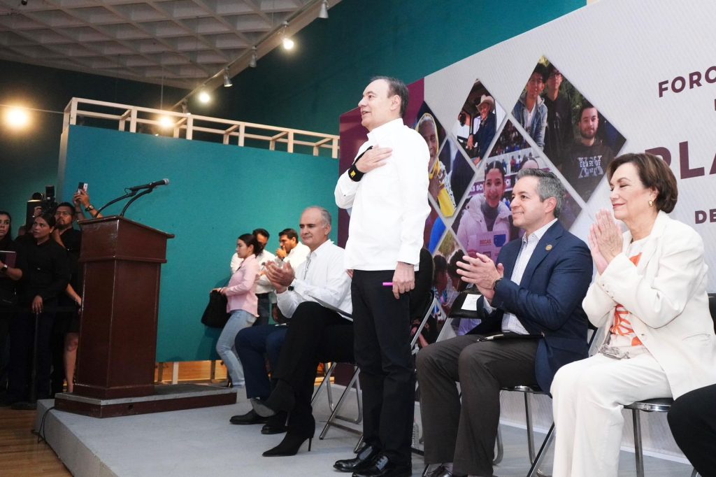 - El mandatario sonorense puso en marcha los foros de consulta pública para actualizar el Plan Estatal de Desarrollo 2022-2027, con el objetivo de alinear los proyectos y políticas del Gobierno de Sonora con el Plan Nacional de Desarrollo 2025-2030, impulsado por la presidenta Claudia Sheinbaum Pardo.