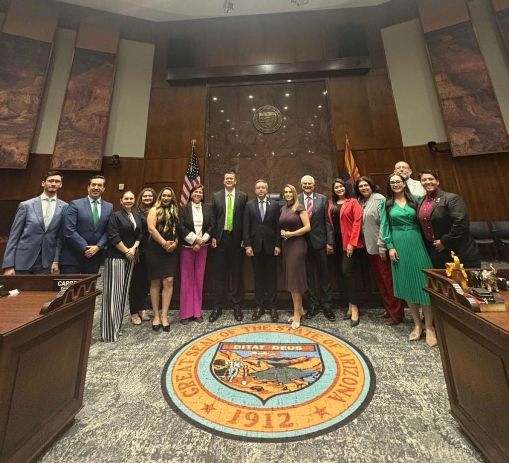 Legisladores de Arizona que participaron en la reunión incluyen a Steve B. Montenegro, presidente de la Cámara de Representantes de Arizona; Tony Rivero, presidente del Comité de Comercio Internacional; Michele Peña, vicepresidenta del Comité de Comercio Internacional; y Michael Carbone, líder de la mayoría.