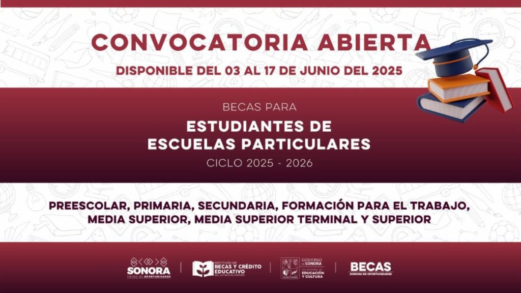 La dependencia estatal detalló que el registro finaliza el martes 17 de junio, y las solicitudes deberán realizarse, sin excepción, única y exclusivamente en la página web oficial del Instituto: https://becasycredito.sonora.gob.mx/.