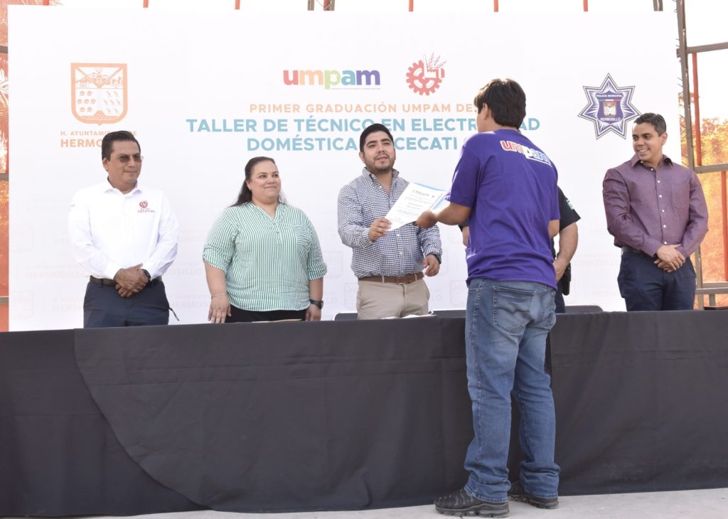 Hermosillo .- Adolescentes que cometieron faltas administrativas en Hermosillo se graduaron del primer Taller Técnico en Electricidad Doméstica que la Unidad Municipal de Prevención y Aplicación de Medidas (UMPAM) Hermosillo les ofreció como parte de las acciones a favor de su reinserción exitosa a la comunidad, en alianza con CECATI.