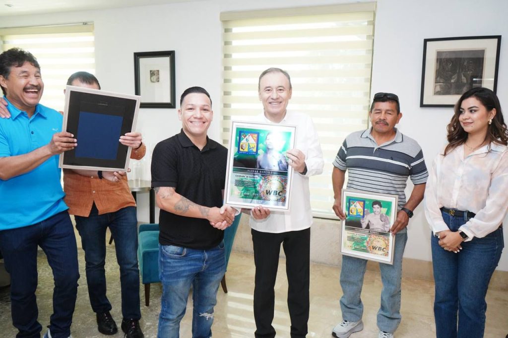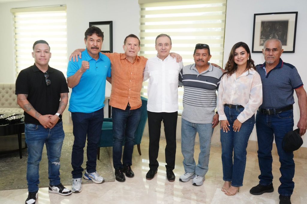 En un encuentro con los boxeadores sonorenses Hernán “Tyson” Márquez, Luis Ramón “Yori Boy” Campas, Julio César Borboa, José Luis Ramírez y la esposa de David Sánchez, Valeria Ruiz, el mandatario estatal expresó su reconocimiento a todos los deportistas por sus destacadas trayectorias en el ring, promoviendo una vida sana para las juventudes.