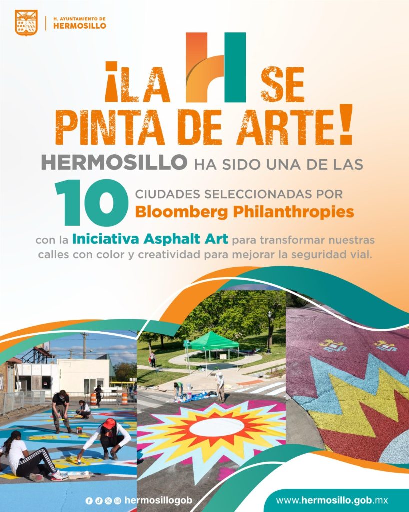 Hermosillo .- Hermosillo es seleccionado como una de las 10 ciudades de América del Norte en recibir el prestigioso reconocimiento de la iniciativa Asphalt Art Initiative de Bloomberg Philanthropies, por su innovador proyecto de intervención urbana con arte en la zona centro de la ciudad, anunció el presidente municipal Antonio Astiazarán Gutiérrez.