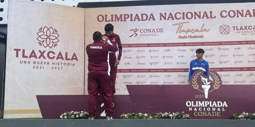 Puerto Peñasco .- Franco González Sotelo, alumno del Colegio de Bachilleres del Estado de Sonora (Cobach), plantel Puerto Peñasco, es orgullosamente subcampeón nacional en atletismo, al ganar medalla de plata y quedar a sólo tres centésimas del primer lugar en la prueba de los 100 metros planos en la Olimpiada Nacional Conade 2025.