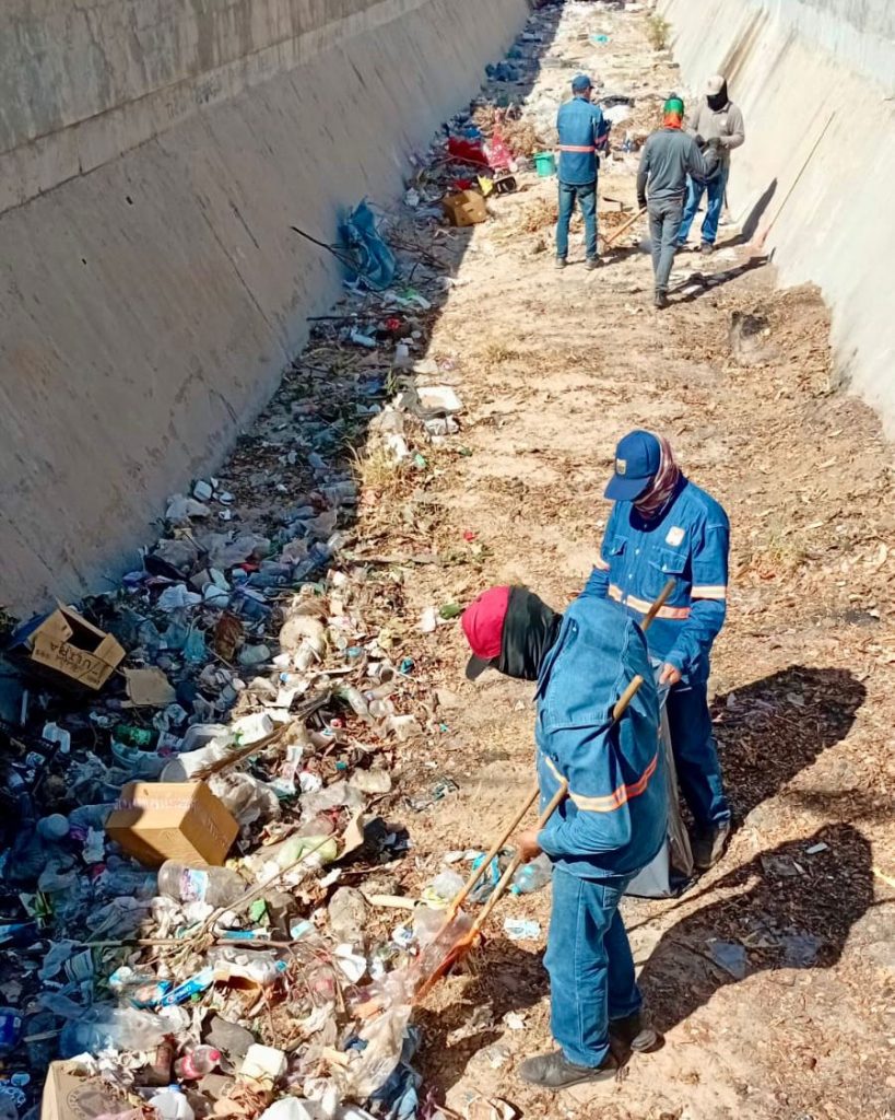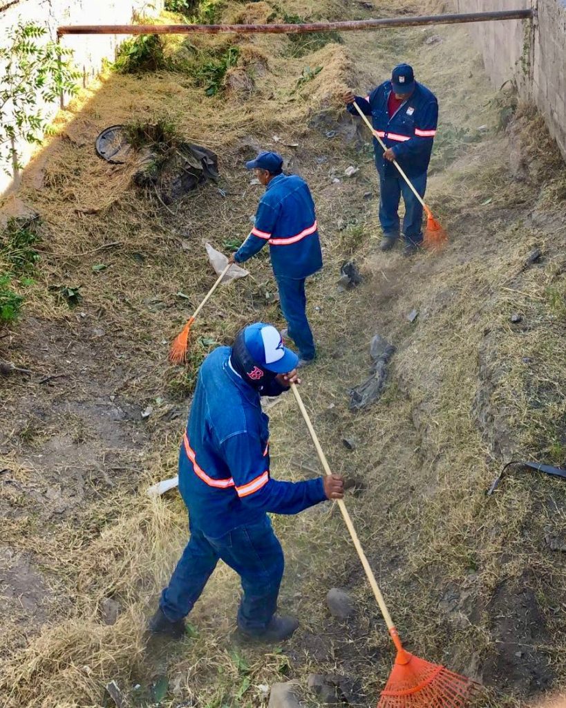 Las labores son realizadas por personal del área de Sanidad y Limpia, cuyo objetivo es evitar inundaciones en las colonias durante las lluvias; por ello, la importancia de mantener limpios los espacios públicos.