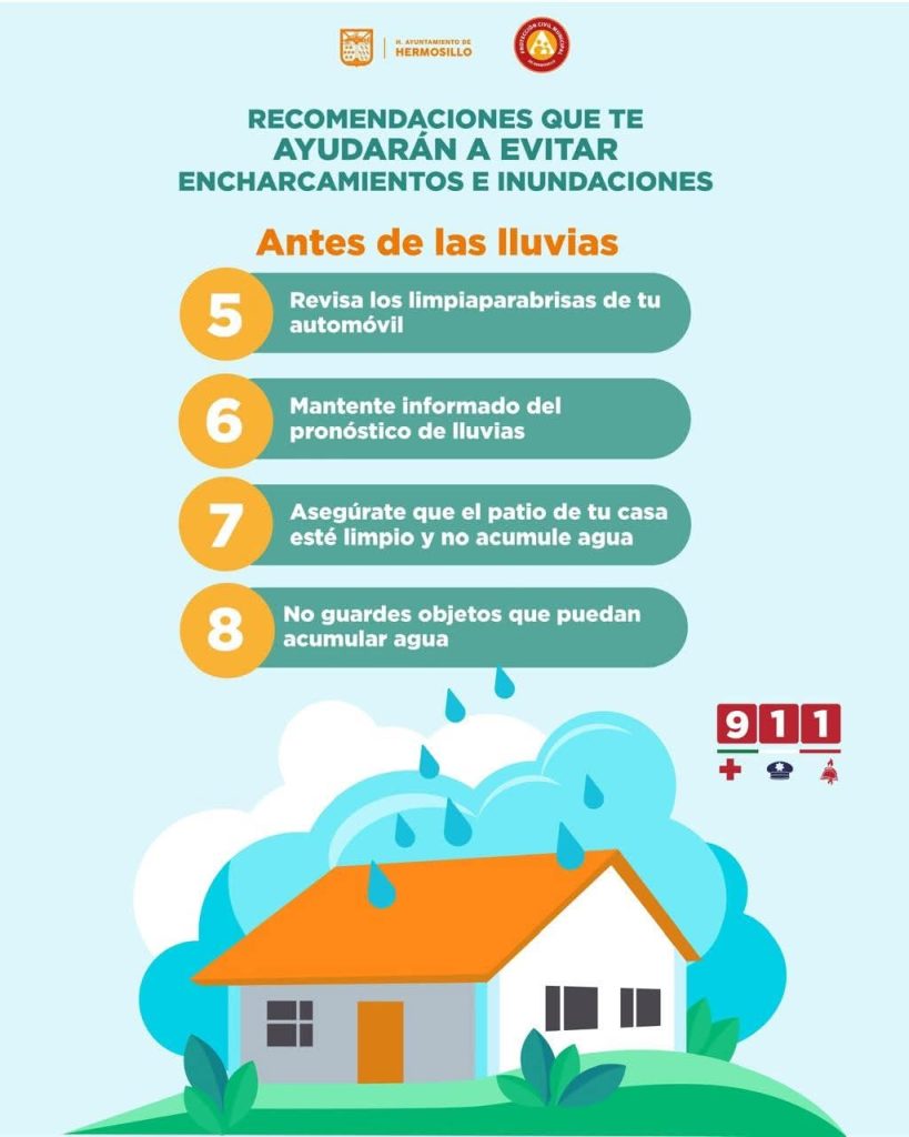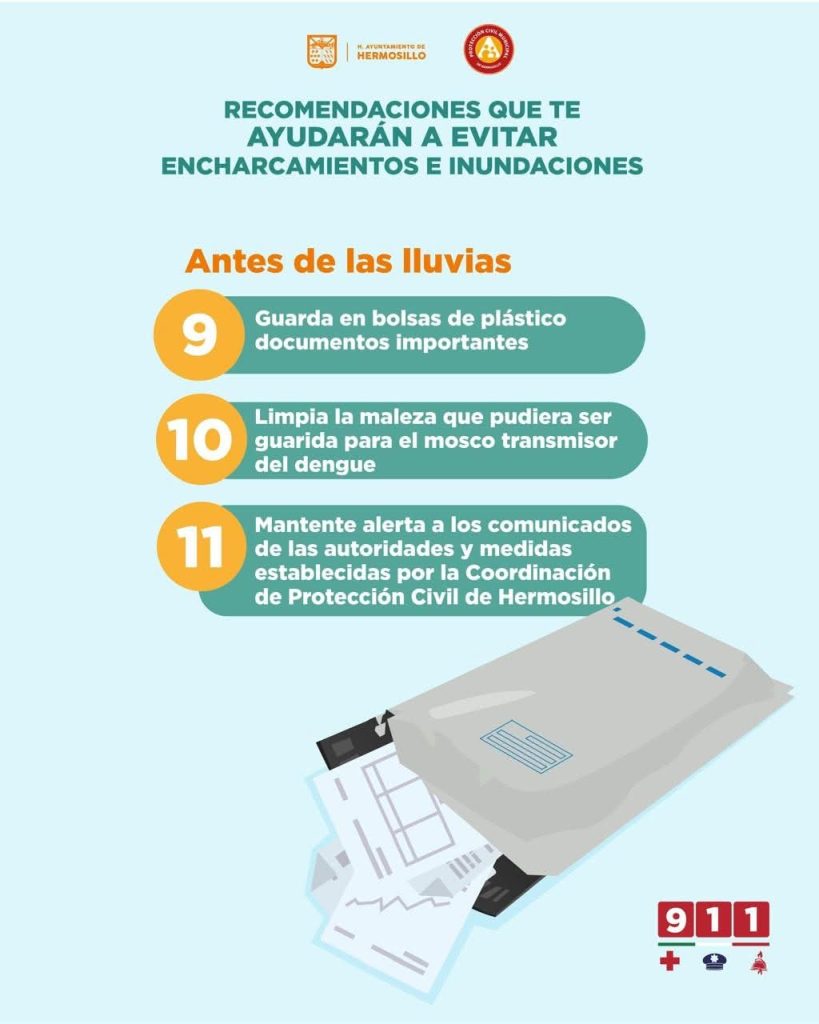 • Sigue las indicaciones de las autoridades y mantente alerta a los comunicados de la Coordinación de Protección Civil de Hermosillo
