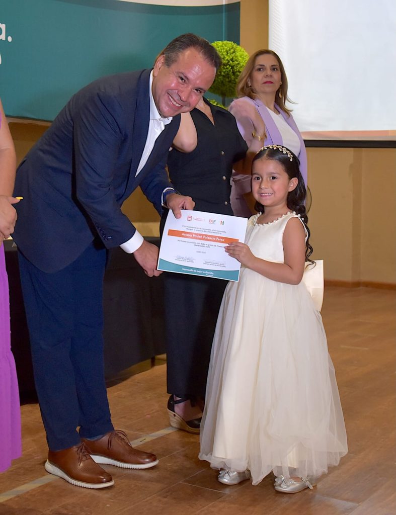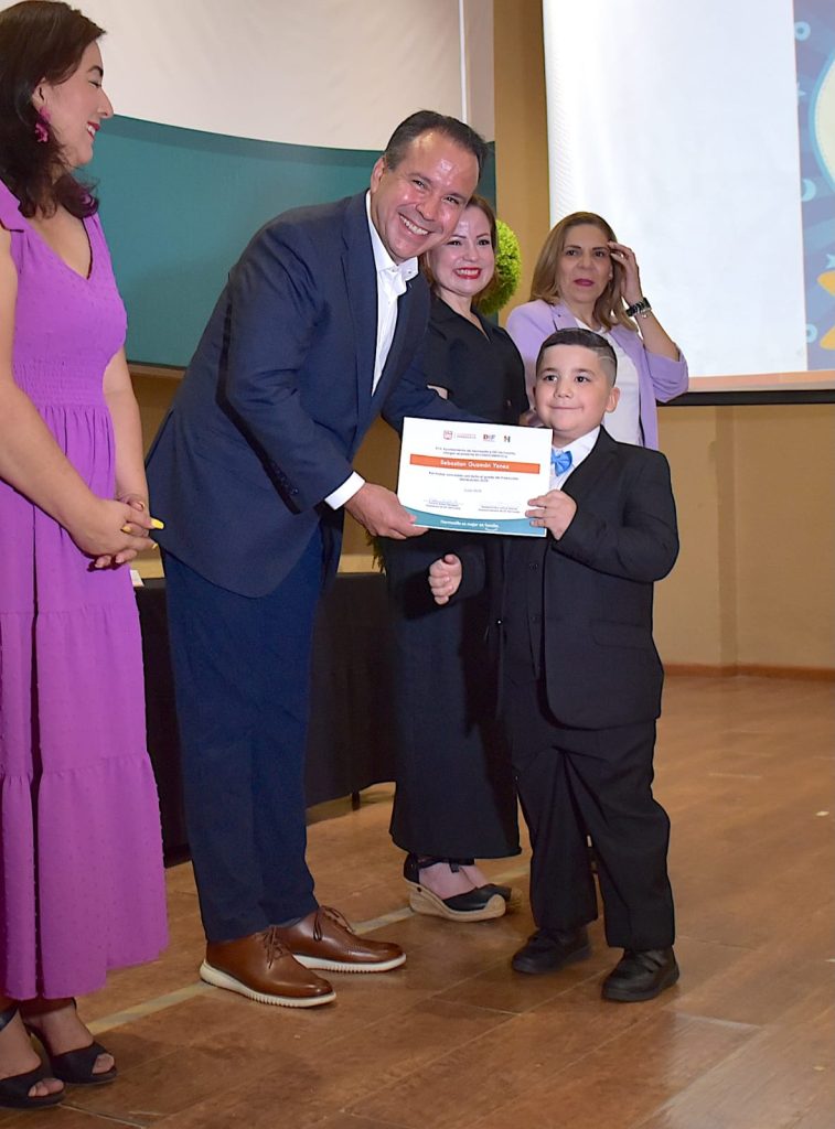 Acompañado por Madeleine Bonnafoux, directora de DIF Hermosillo, celebró este importante logro de 35 estudiantes de las estancias Gómez Morín y Miguel Hidalgo, con quienes se comprometieron en continuar brindando espacios seguros, atención integral y herramientas para su desarrollo académico.