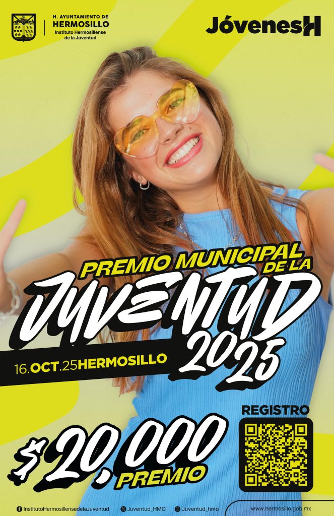 Hermosillo .- El Instituto Hermosillense de la Juventud (IHJ) presentó la convocatoria al Premio Municipal de la Juventud 2025, que reconocerá a 13 jóvenes destacados en diferentes áreas de desarrollo, con una bolsa de 260 mil pesos en premios, distribuidos en dos categorías.