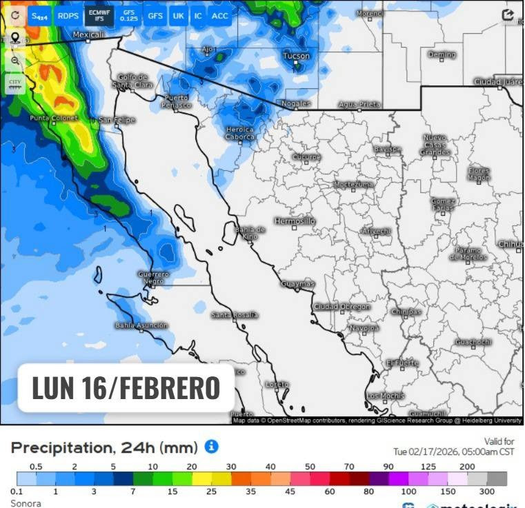 Finalmente, se prevé un aumento en las temperaturas máximas para el próximo fin de semana, con tardes cálidas donde se proyectan valores de 30 °C a 35 °C en la región centro y sur del estado de Sonora.